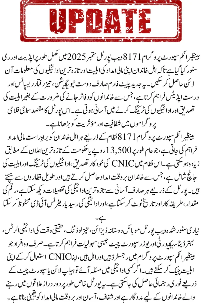 The system automates CNIC verification, payment tracking, and eligibility checks, ensuring that families receive their assistance on time. By using the 8171 portal, beneficiaries save time, avoid long queues, and get transparent updates about their payments and program status.