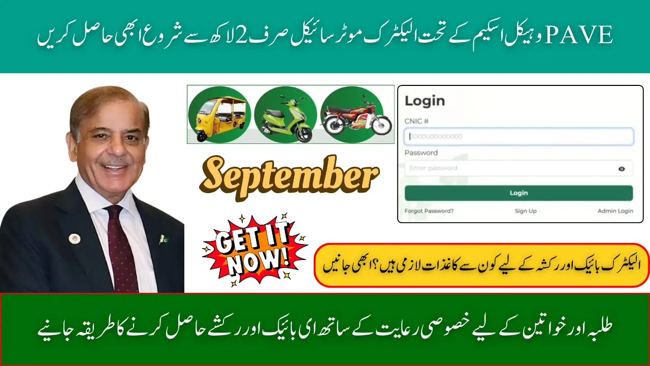 Government of Pakistan has launched the PAVE Gov Pk Vehicle Scheme 2025 under the New Energy Vehicle Policy 2025–2030. The program focuses on promoting eco-friendly transport and cutting down fuel costs. Citizens can buy electric bikes, rickshaws, and loaders at subsidized prices with simple installment plans, making modern travel more affordable.